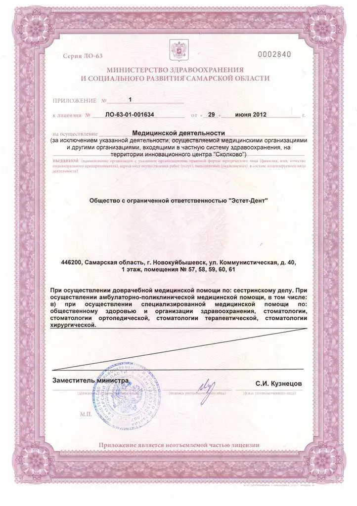 Специализация в 2017 г. по специальности «Стоматология общей практики». Аккредитация в 2022 г. по специальности «Стоматология общей практики».